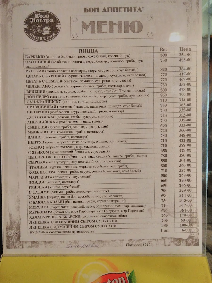 Welcome to Cosa Nostra, a delightful pizzeria located on Ulitsa Rossiyskaya in Krasnodar. Known for its vibrant atmosphere and flavorful dishes, Cosa Nostra emphasizes quality ingredients and quick service. Customers rave about the delectable pizza, highlighting its generous toppings and thin crust. Reviewers describe the pizzas as not just tasty, but also perfectly balanced with cheese, sauce, and freshness.